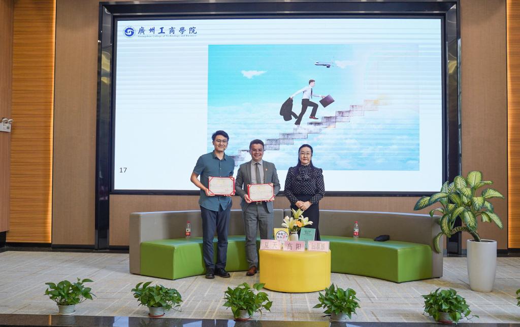 活动最后,回雁雁馆长为高阳副总经理、夏天副会长颁发“万卷万里”读书之“企业家进校园”系列活动“主讲嘉宾”聘书,感谢他们对学校就业创业工作的支持。