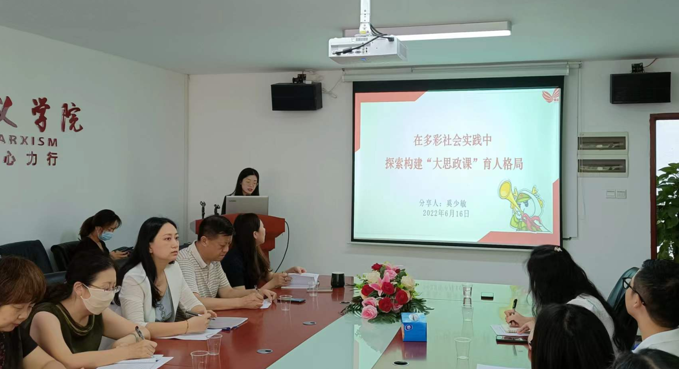 【本网讯】为了深化思政课改革创新,进一步提升铸魂育人实效,6月16日下午,beat365在线体育官网登录入口张辉名师工作室联合马克思主义学院在三水校区院部楼举办思政课实践教学改革与创新研讨会暨学术论坛第21讲。学校党办副主任、组织部副部长奚少敏作题为《在多彩社会实践中探索构建“大思政课”育人格局》的讲座。会议由马克思主义学院党总支书记、常务副院长周静副教授主持。张辉名师工作室全体学员和马克思主义学院教师代表参会。
