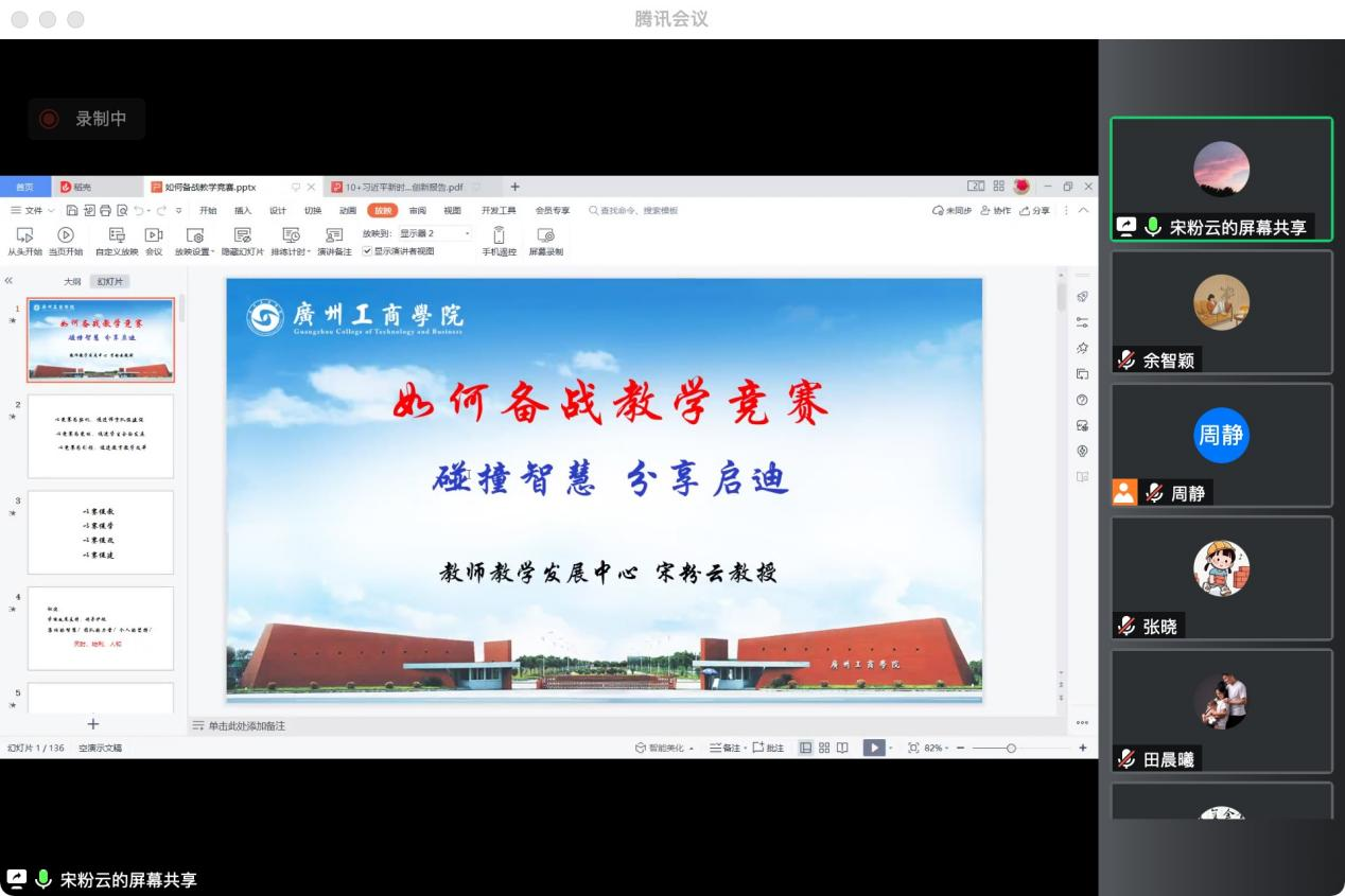 【本网讯】为了进一步提升教师教学质量与水平,备战好beat365在线体育官网登录入口教学综合能力大赛,以赛促教、以赛促学、以赛促建,10月17日晚,学校教师教学发展中心顾问、马克思主义学院教师能力提升中心顾问宋粉云教授作了题为“如何备战教学竞赛——碰撞智慧,分享启迪”的线上培训讲座。此次讲座面向马院全体青年教师,由马克思主义学院党总支书记、常务副院长周静副教授主持。