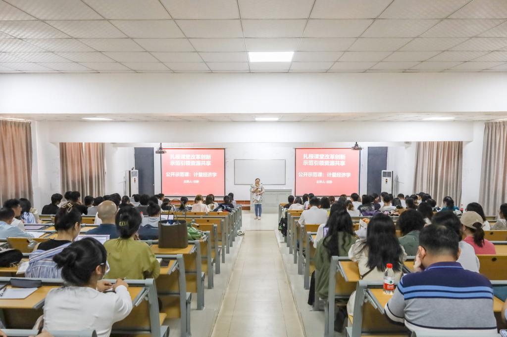 【本网讯】为促进课堂教学改革,4月20日下午,商学院在花都校区举办教学观摩课,由任静老师讲授《计量经济学》,现场共有150名师生参加。