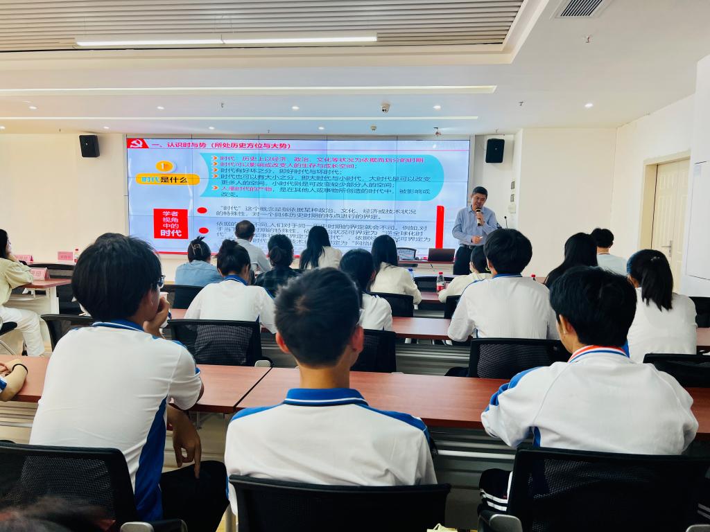 在专题讲座中,夏泉教授聚焦“时代”与“变局”,分别从长时段、宽视野两个维度把握中国共产党与中国史发展演变脉络,梳理了百年党史过程中的重大事件与关键时刻,深入解读“百年未有之大变局”的主要特征,结合自身经历与社会时事讲解新时代新征程的“三个深刻改变”,让与会师生更加深入了解新时代新征程国家发展和民族复兴过程中所面临的机遇与挑战。
