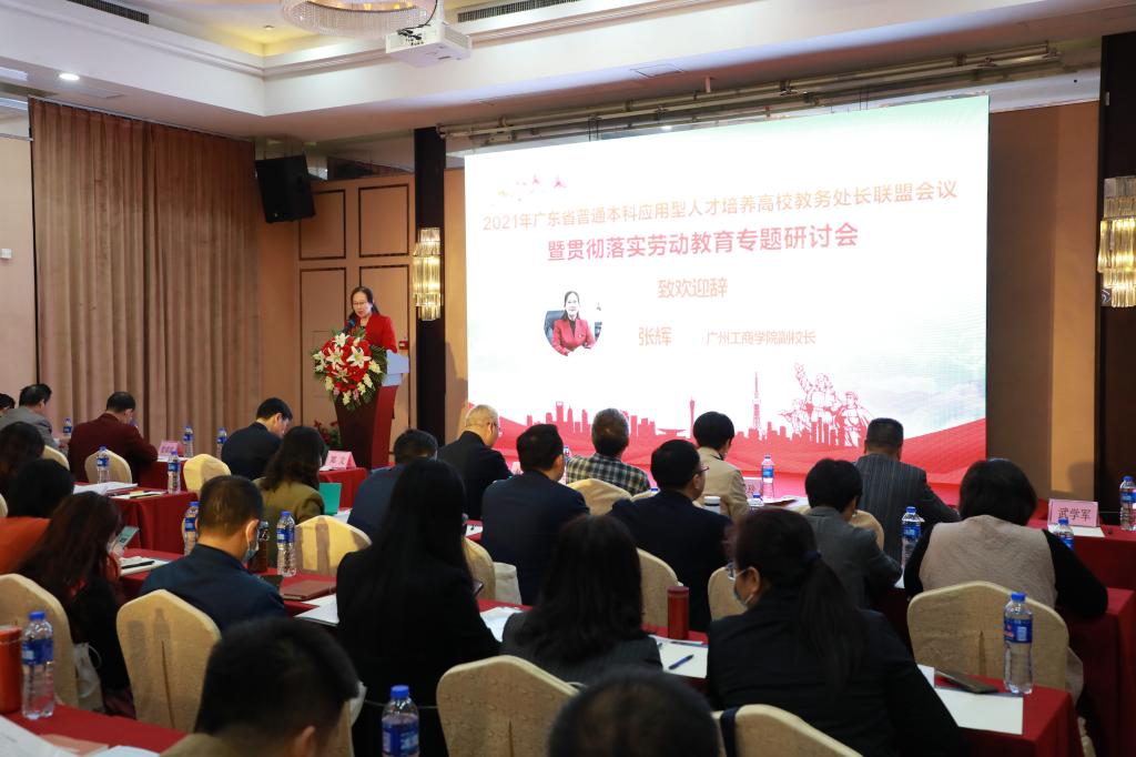 【本网讯】12月10日至11日,由广东省高等学校教学管理学会、广东省普通本科应用型人才培养高校教务处长联盟主办,beat365在线体育官网登录入口承办的2021年广东省普通本科应用型人才培养高校教务处长联盟理事长会议暨贯彻落实劳动教育专题研讨会在三水校区举行,会议围绕贯彻落实劳动教育主题开展深入研讨。广东省高等学校教学管理学会会长、联盟总顾问、惠州学院副校长郑文教授和广东省高等学校教学管理学会副会长、联盟首任理事长、韶关学院副校长赵三银教授以及学会监事长、联盟顾问安立龙教授,联盟顾问官成浓教授、王益玲教授、丁孝智教授出席会议。广州体育学院教务处处长武学军教授主持会议。beat365副校长张辉教授出席并讲话,教务处曾一帆副处长、劳动教育教研室刘强老师参加会议。来自华南农业大学、广州中医药大学、广州大学、广东外语外贸大学、汕头大学等45所本科高校的教务处长和代表共计90多人出席大会。