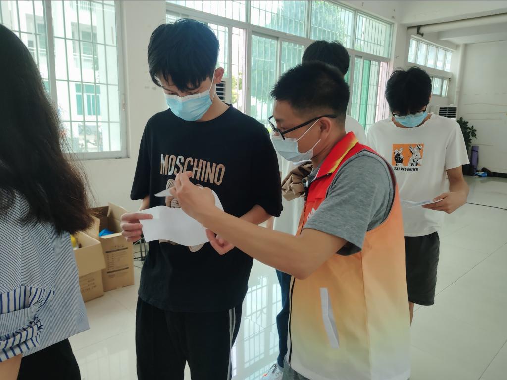 4月25日,会计学院教师党员志愿者在第一教学楼B栋一楼为接种新冠疫苗保驾护航。志愿者们身披红马甲,在现场熟练地开展排队引导、指引填写接种单据、测量体温、人员分流等志愿服务。