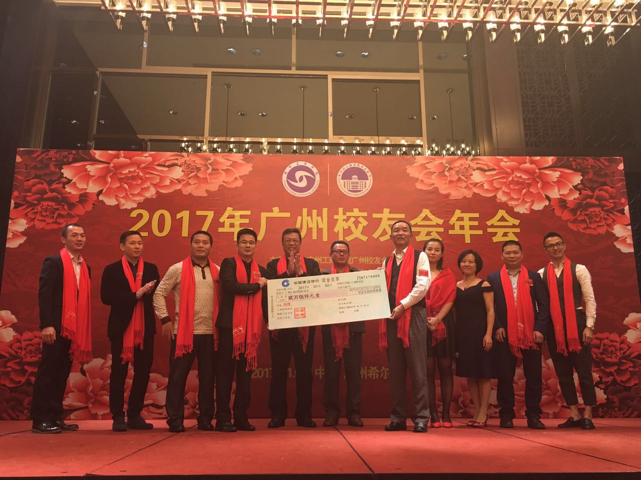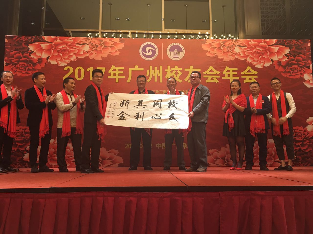 2017年1月2日,beat365在线体育官网登录入口2017年广州校友会年会在广州天河希尔顿酒店隆重举行。年会开始,校友们戴上象征“爱”的红色围巾,走过红地毯进入会场,脸上布满了幸福的笑容。
