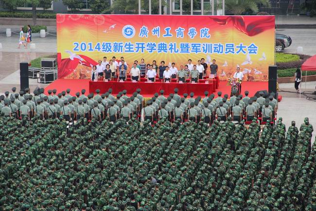 9月8日,正值一年一度的中秋佳节,我院分别在三水校区与花都校区隆重举行了2014届新生开学典礼暨军训动员大会。学院院长邝邦洪,副董事长文传道、党委书记兼副院长钟伟强,副院长吴宏岳、乔丽媛、朱特威,董事办主任曾婉文,军训团团长出席了大会,院属单位及各系部负责人,承训部队教官、2014级全体新生及部分老生代表均参加了大会。六千余名师生共同度过了一个不平凡的中秋节。