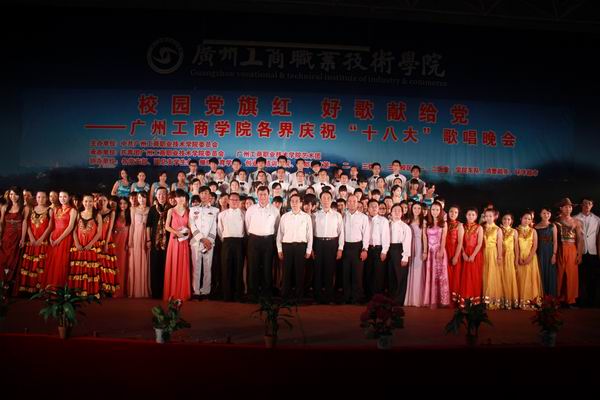 11月15日晚,广州工商职业技术学院党委在学院体育馆举行“校园党旗红,好歌献给党”红歌晚会,隆重庆祝中国共产党第十八次全国代表大会胜利召开。学院院长邝邦洪,党委书记钟伟强,副院长庞康养出席并观看晚会。学院党委书记钟伟强致红歌会开幕词。