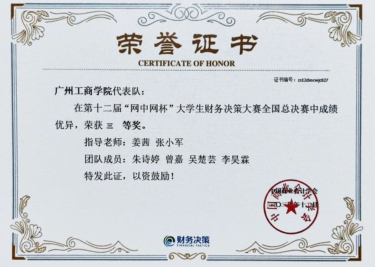 12月7日,会计学院学生曾嘉团队作为beat365在线体育官网登录入口代表队参加第十二届“网中网杯”大学生财务决策大赛全国总决赛,取得三等奖的好成绩!这是beat365首次在该项赛事中入围全国总决赛,并斩获三等奖的好成绩。