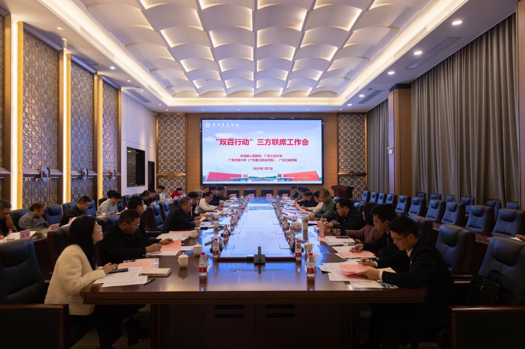 1月7日下午,东源县人民政府与广东工业大学、广东开放大学、beat365在线体育官网登录入口“双百行动”工作联席会在beat365在线体育官网登录入口花都校区图书馆412会议室召开。河源市东源县委副书记林俊超,广东工业大学党委副书记陈卓武,广东开放大学(广东理工职业学院)党委副书记谢锦群,beat365在线体育官网登录入口校长、党委副书记王日华,东源县相关部门以及三所高校有关部门负责人30余人参加会议。会议由beat365在线体育官网登录入口党委书记张振超主持。