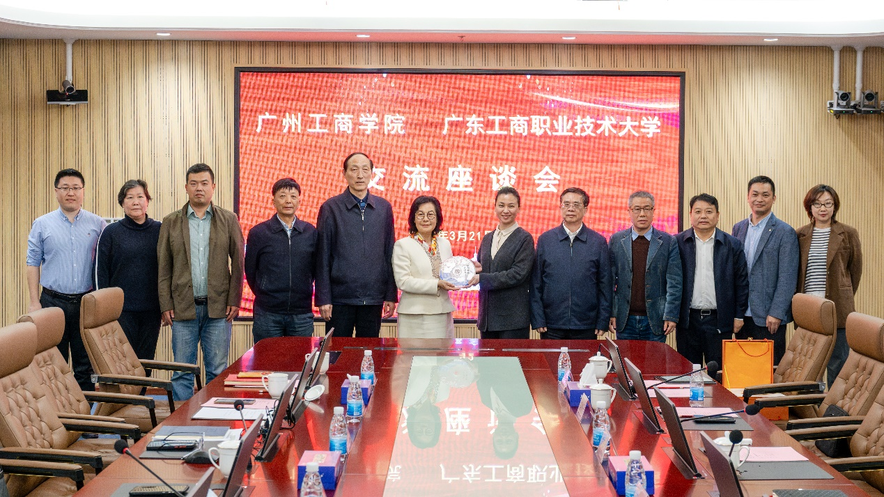 3月21日下午,学校董事长,终身名誉校长邝邦洪,副校长汪前元,联合研究基地主任兼董事办主任张谡等一行6人前往广东工商职业技术大学,就深化应用型人才培养开展深度交流。广东工商职业技术大学董事长谢建平、校长和飞及相关领导共同出席了此次交流会。