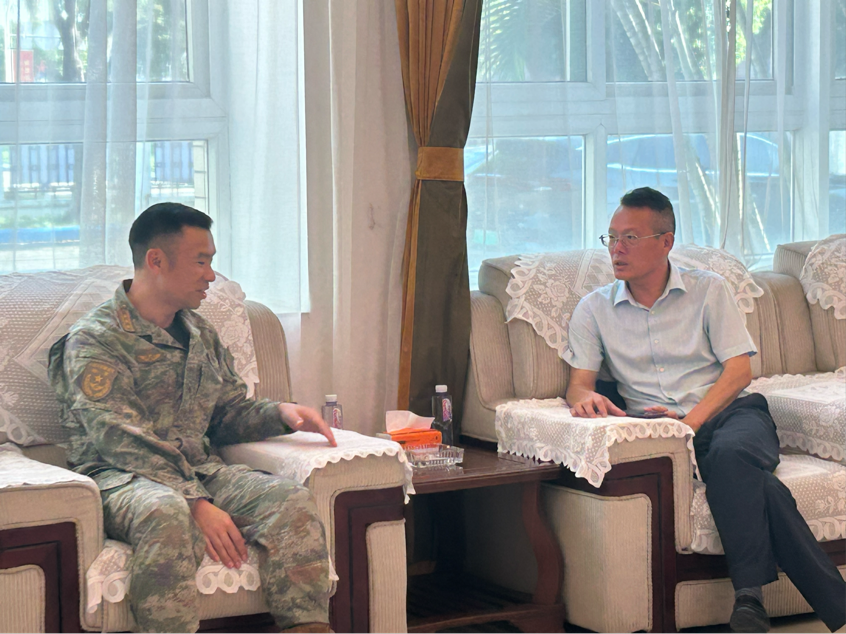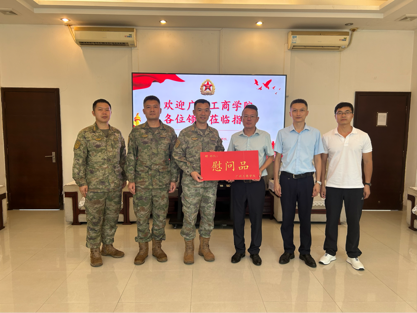 为深入学习贯彻习近平强军思想,庆祝中国人民解放军建军98周年,弘扬拥军优属的优良传统,促进学校与军队共建再上新台阶,增进军民鱼水之情,7月25日,学校党委副书记、纪委书记、副校长朱特威率三水校区管委会和武装部负责人慰问了驻地部队官兵,为他们送去节日的祝福以及赠送慰问物资。慰问团一行四人受到部队领导的热情接待,双方进行了友好座谈交流。