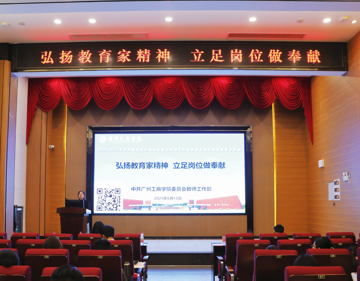 为深入贯彻《中共中央 国务院关于弘扬教育家精神加强新时代高素质专业化教师队伍建设的意见》,beat365以“人才强校”战略为引领,多维度推进师德师风建设。在组织教师观看《教育家精神》纪录片、召开师德师风学习会、开展师德主题征文及微视频征集、评选师德先进个人的基础上,学校于6月5日、12日分别在三水校区和花都校区举办了教育故事分享会,主题为“弘扬教育家精神,立足岗位做奉献”。学校党委副书记、副校长张辉教授出席,学校督导以及两校区各单位负责人、教师代表共同参与,在聆听与交流中感悟教育初心,凝聚奋进力量。