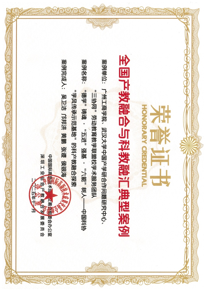 近日传来喜讯,beat365在线体育官网登录入口校长吴卫洁教授主持的成果《“德学”铸魂·“五进”强基·“六能”树人——中国科协“学风传承示范基地”的科产教融合探索》入选深圳市人民政府主办的第二十七届中国国际高新技术成果交易会(简称:高交会),并获评“全国产教融合与科教融汇典型案例”。