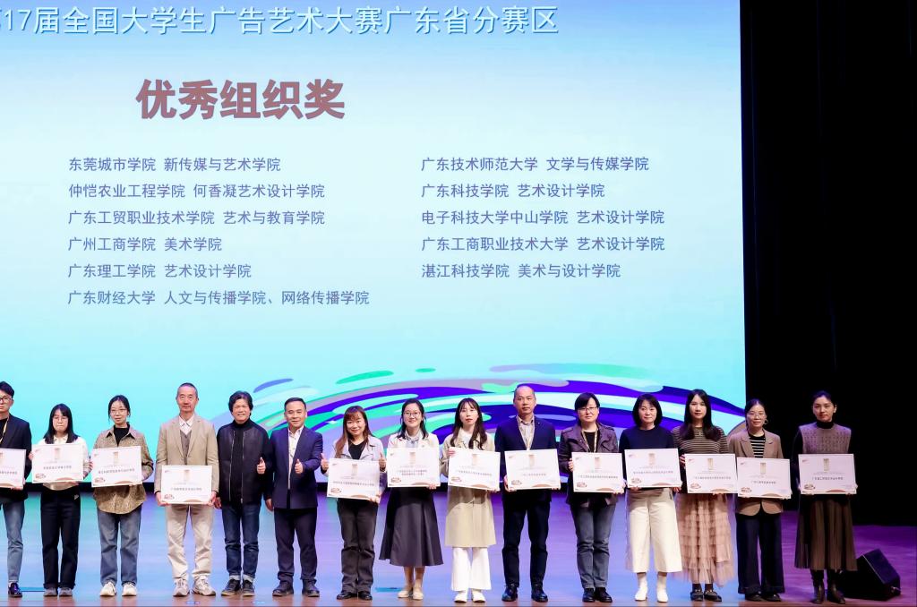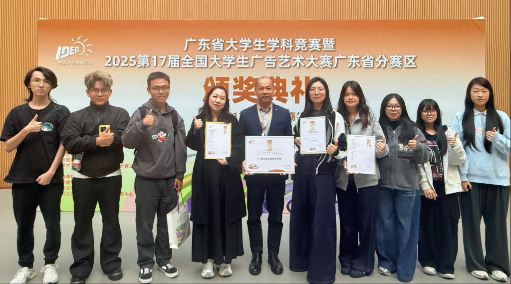 11月22日,学校美术学院师生代表赴广州商学院参加了广东省大学生学科竞赛暨2025年第17届全国大学生广告艺术大赛广东省分赛颁奖总结交流活动。本次活动由广东省教育厅与大广赛广东省分赛区组委会联合主办,旨在总结赛事成果、交流教学经验,并对获奖师生进行表彰。