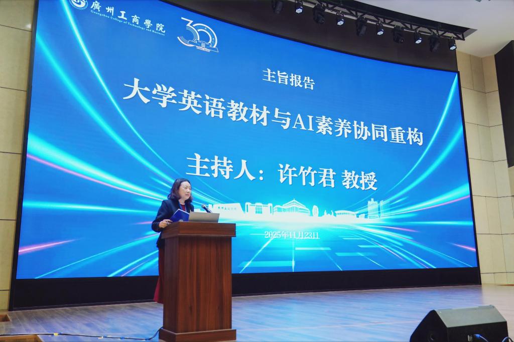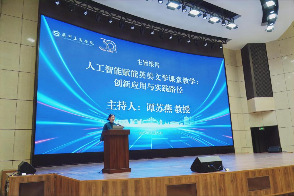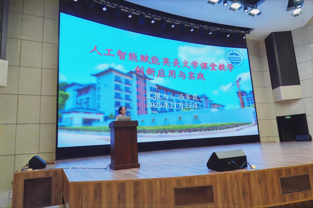 广州理工学院冯军霞教授,在题为《人工智能赋能英美文学课堂教学》的报告中,从构建“文学知识图谱”、个性化教学推送、设计探索性任务三方面,阐述AI在文学课堂的创新应用,培养学生批判性思维与创新能力。
