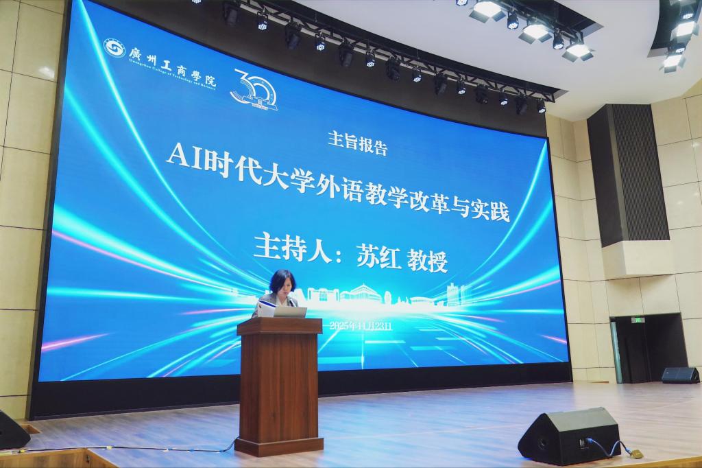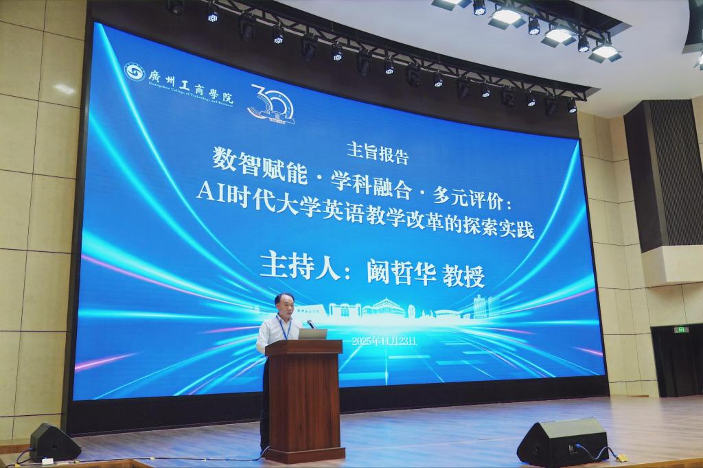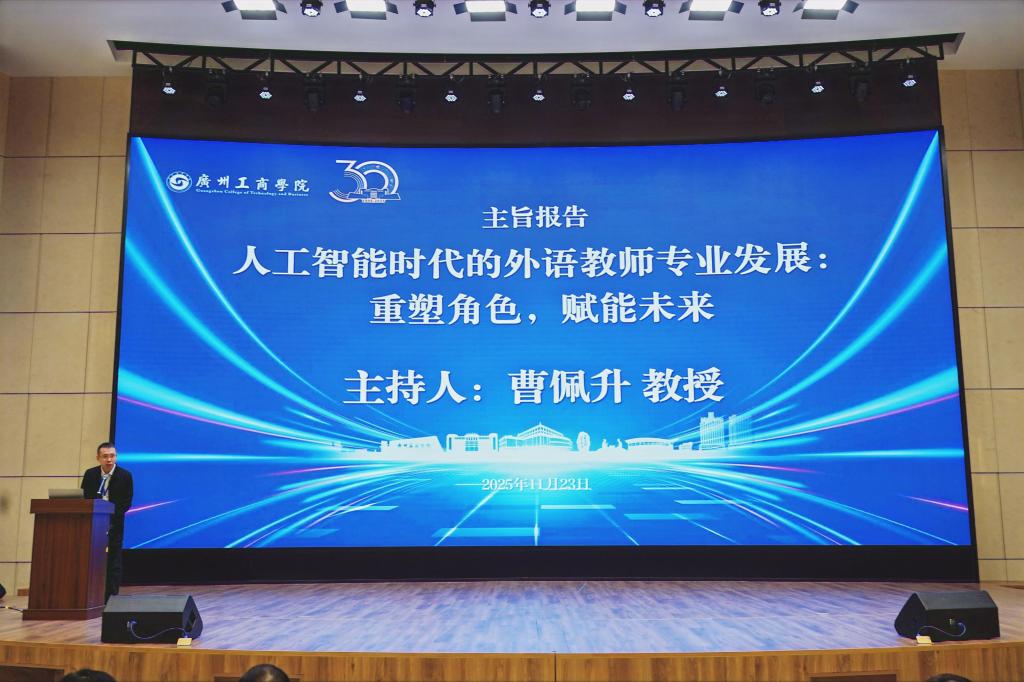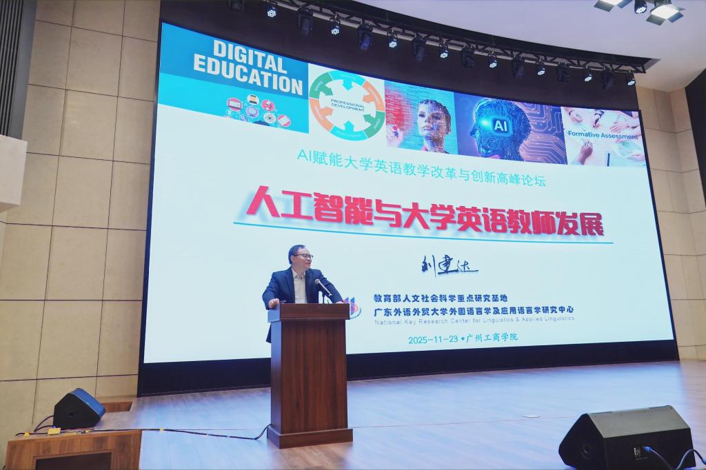 11月23日,AI赋能大学英语教学改革与创新高峰论坛在beat365在线体育官网登录入口花都校区顺利举行。本次论坛由beat365在线体育官网登录入口外语学院主办,广东省本科高校大学英语课程教学指导委员会指导。吸引了广东省及澳门地区百余位外语界专家学者、高校外语学院院长及大学英语教师参会,论坛聚焦AI技术在大学英语课堂教学、过程性评测、个性化学习及数智资源建设等关键环节的创新应用,共同探讨AI赋能大学英语教学改革与创新。