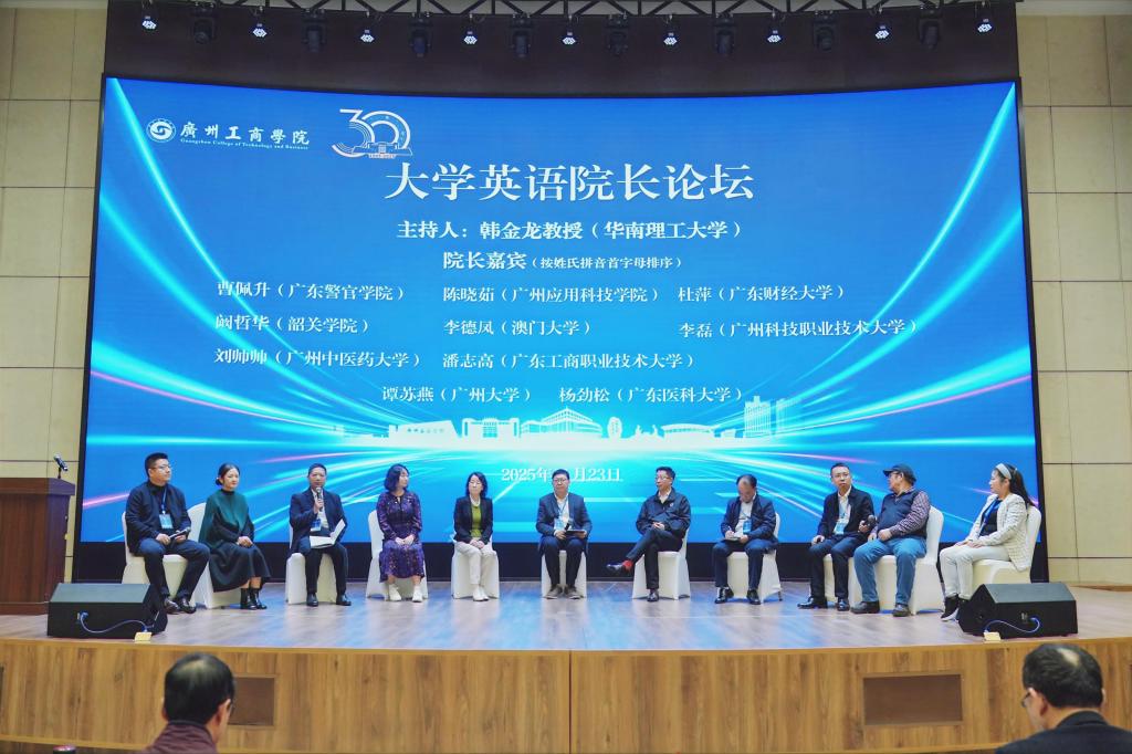 院长论坛是本次会议共探外语教育发展新路径的核心和关键环节。院长论坛由华南理工大学韩金龙教授主持,来自澳门大学、广州中医药大学、广州大学、广东财经大学、广东医科大学、广东警官学院、韶关学院、广州应用科技学院、广州科技职业技术大学、广东工商职业技术大学等10所高校的外语学院院长及专家代表围绕AI技术与大学英语教学深度融合的时代命题,展开了深入交流。各位嘉宾结合所在院校办学特色与教学实际,从三大核心维度进行分享:在院校发展定位上,代表结合本校人才培养目标,介绍将AI 技术纳入英语教学规划的做法;在课程改革实施策略方面,嘉宾拆解AI技术落地课堂方案,分享改革挑战与应对策略;在课程建设成果经验部分,多所高校展示AI赋能英语教学的阶段性成果。整场论坛集中展示高校英语教学改革成果,搭建跨院校、多维度交流平台。嘉宾在分享中相互启发、探讨中碰撞思路,为大学英语教学深化改革、推动创新提供实践参考与方向指引。