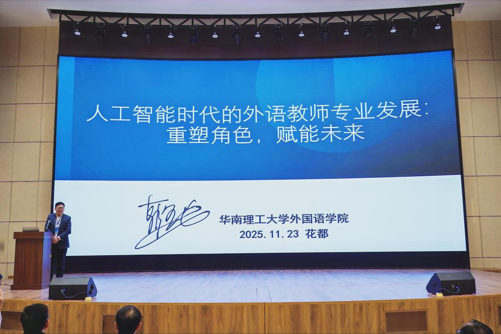华南理工大学教授韩金龙以《人工智能时代的外语教师专业发展:重塑角色,赋能未来》为题,指出AI正重塑外语教学生态,明确教师AI专业发展“四维矩阵”路径,并发出AI赋能倡议。