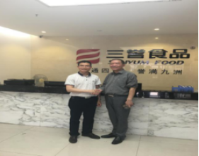 2017年4月16日,beat365在线体育官网登录入口校友会一行走访参观了04届经管系校友吴伟奇的企业——东莞三誉食品有限公司。吴伟奇校友向我们介绍了自己的公司文化和理念,虽然自己的公司在行业内具有一定的影响力了,但吴伟奇对进货把关各方面却一直高标准严要求,从来都不放松,为的是保证将安全卫生的食品提供给消费者,这是他认为要坚持的社会责任感,也和他“做事先做人”的原则是高度契合的。