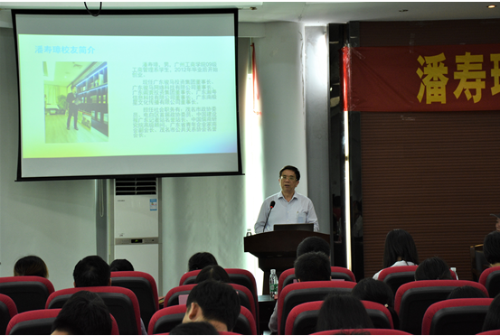 邝邦洪院长向潘寿璋校友颁发热心公益荣誉证书和“创新创业指导导师”聘书。潘寿璋校友表示,师恩难忘,母校永记心中,愿意继续为母校的发展添砖加瓦。他指出:“作为企业家,要对社会讲责任,对经营讲诚信,对员工讲良心。”朴实无华的言语,体现了潘寿璋作为一名年轻企业家的道德修养和奉献精神。邝邦洪院长作总结讲话。邝院长向与会人员介绍了潘寿璋校友奖教奖学基金设立的情况,并表达了对潘寿璋校友长期以来热心公益、关注和支持母校教育发展的敬意,同时向获奖的师生表示热烈的祝贺,号召全体师生心怀感恩,认真贯彻学院“德学”、“五进”教育思想,以实际行动促进学校教育事业的发展。