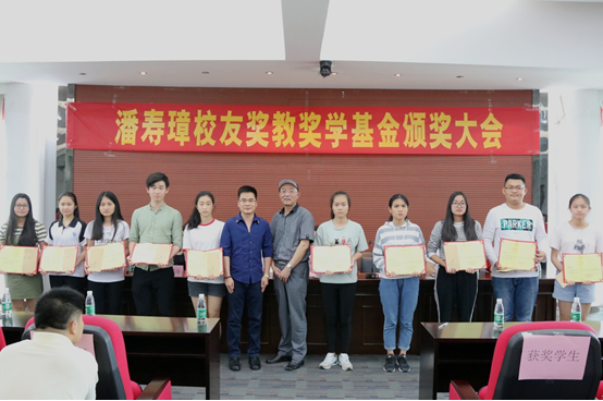 系主任石丽明在会上宣布了《工商管理系潘寿璋校友奖教奖学基金表彰决定》。潘寿璋校友、朱特威副院长和校友会主任余永学分别为20名获奖师生颁奖。获奖教师和学生代表先后作了获奖感言。教师代表刘雪萍老师表示会以此次获奖为契机,加倍努力,以更高的精力和更高的热情投入教学和科研工作,更加关爱学生,争取培育出更多优秀学生。2015级工商管理B8班曾兰芳同学表达了对潘寿璋校友奖教奖学基金和学校的感激之情,表示将继续以优异的成绩,来回报学校和社会各界的关爱。