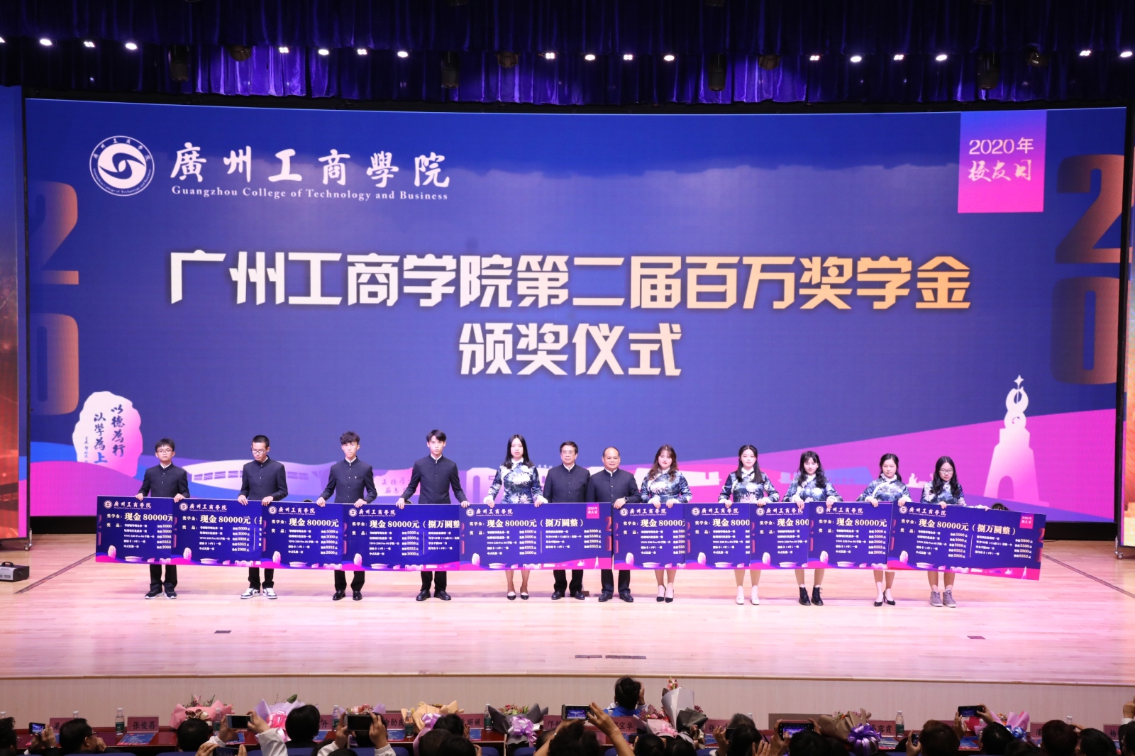 百万重奖优秀新生,助学育才勇担使命。下午,学院第二届百万奖学金颁奖典礼在三水校区系部楼新建影视厅举行。学院董事长邵宝华出席并致辞,学院院长邝邦洪讲话,党委书记张振超宣读表彰决定,优秀校友代表潘寿璋、优秀新生代表黄乙恩上台发言。邵宝华董事长、邝邦洪院长为奖学金获得者颁奖。颁奖活动由学院副院长朱特威主持。