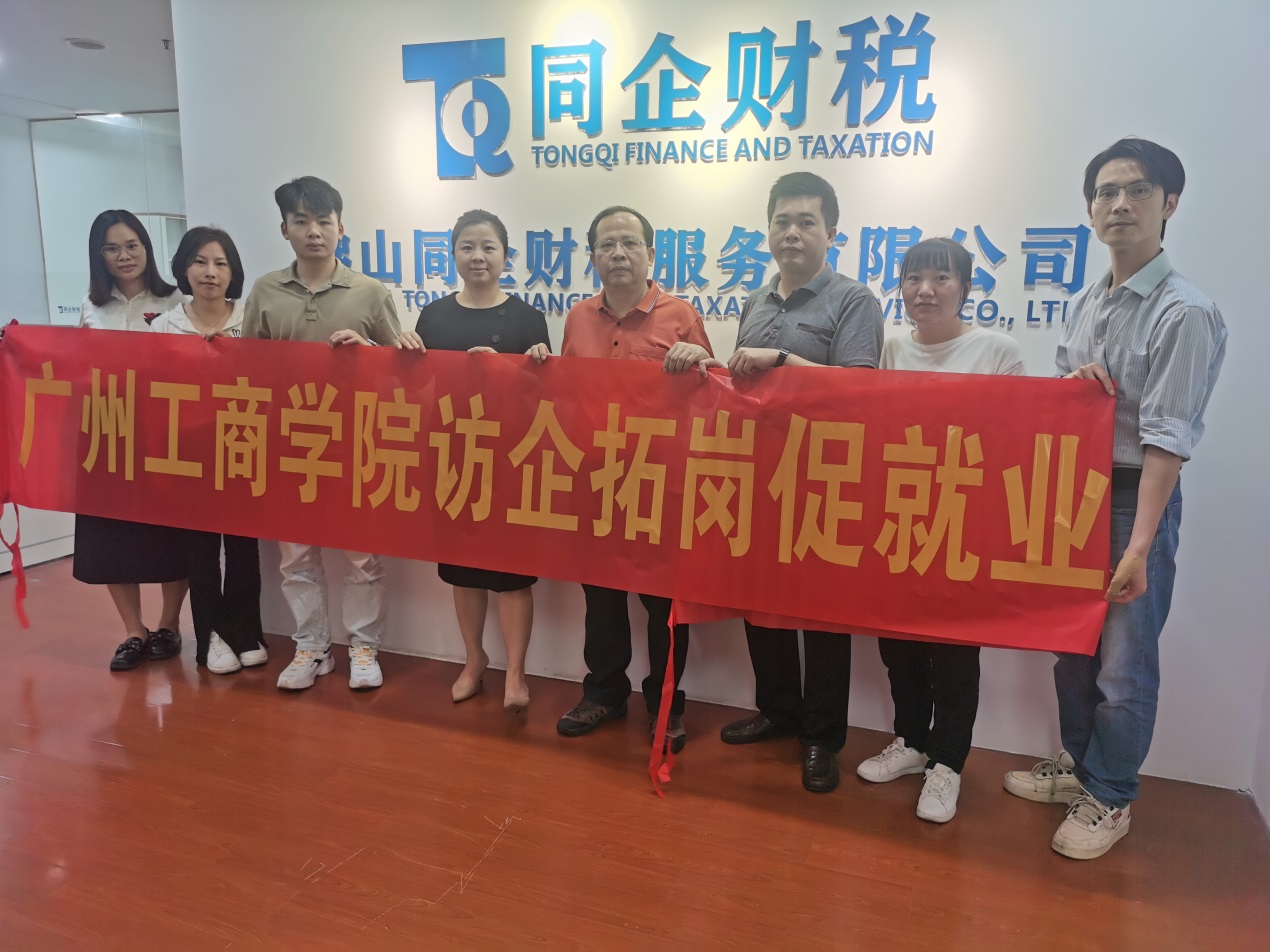 为深入贯彻落实党中央、国务院关于“稳就业”“促就业”决策部署,全面推进2023届毕业生更充分更高质量就业,5月16日,结合beat365在线体育官网登录入口校友会五年发展规划调研工作,学校副校长带领继续教育学院一部钟院生副院长、校友会办公室余伟波主任等一行,到佛山开展“访企拓岗促就业”专项行动,先后走访了佛山同企财税服务有限公司、佛山拍掂影传媒有限公司、佛山市臻好企业管理有限公司三家校友企业。