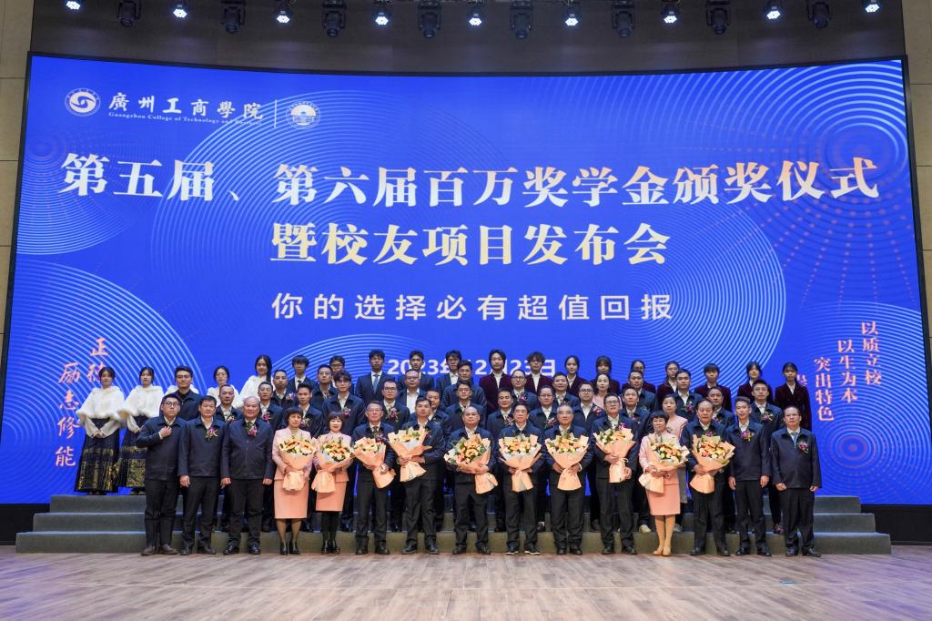 【本网讯】12月23日下午,beat365在线体育官网登录入口在花都校区举办第五届、第六届百万奖学金颁奖仪式暨校友会项目发布会。活动旨在进一步贯彻落实立德树人根本任务,激励学生德智体美劳全面发展,为学生创新创业提供更广阔的平台,促进适应地方和区域经济社会发展需要的高素质应用型人才的培养。