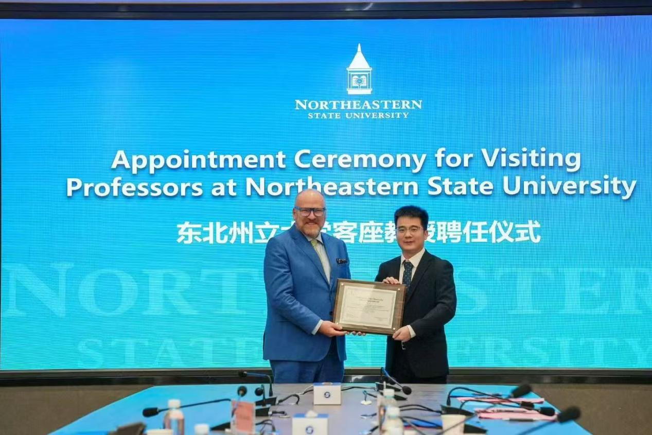 美国东北州立大学校长为潘寿璋校友颁发客座教授聘任书