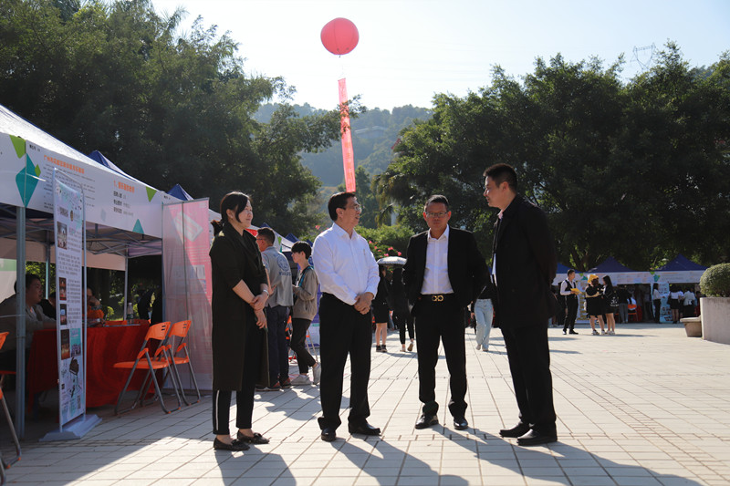 【本网讯】11月21日下午,学院2019年秋季校园供需见面会在花都校区青年文化广场举行。学院院长邝邦洪、副院长朱特威、学生处处长黄鹏在招生就业办相关负责人的陪同下,亲临现场指导工作并与用人单位代表交流。