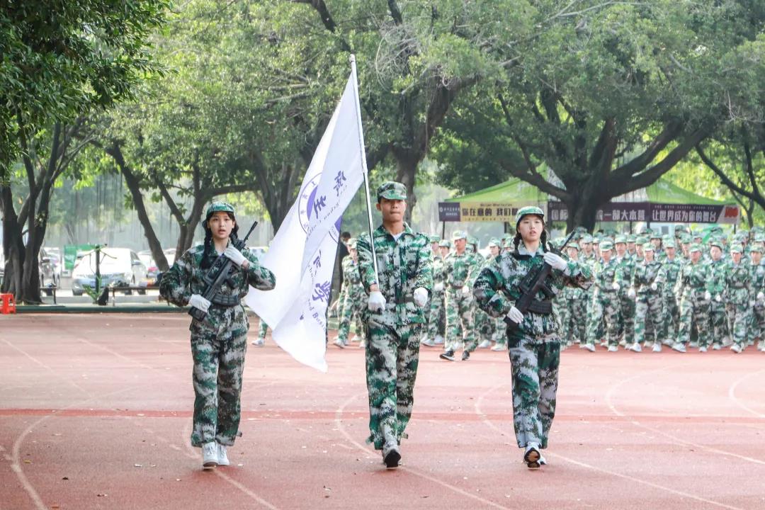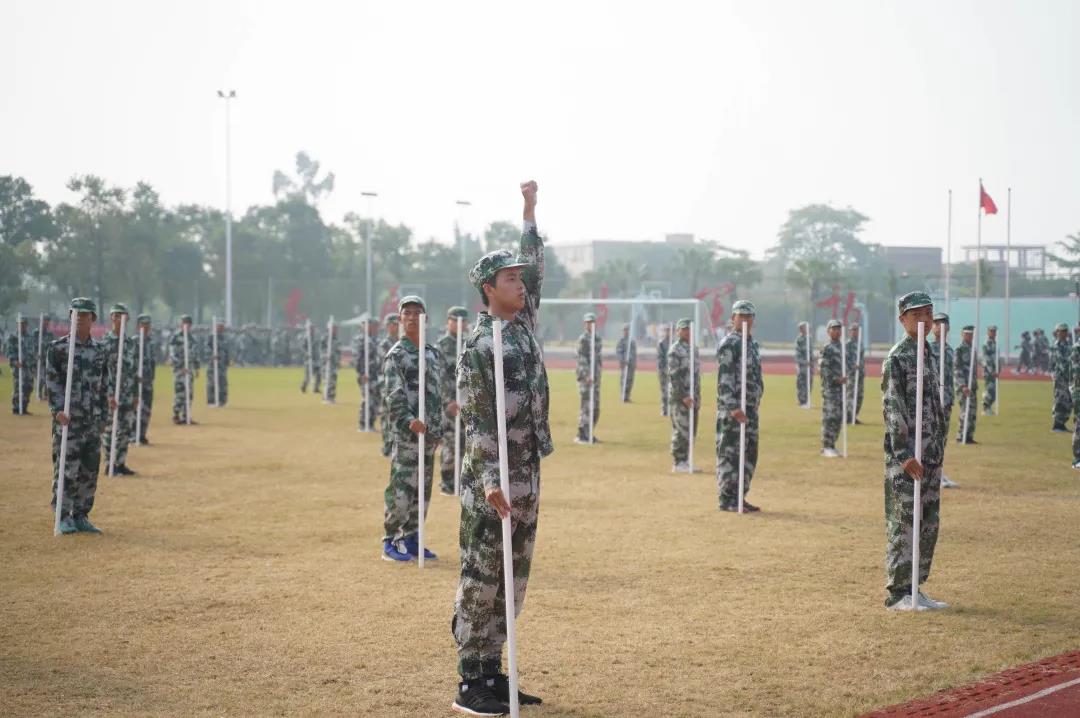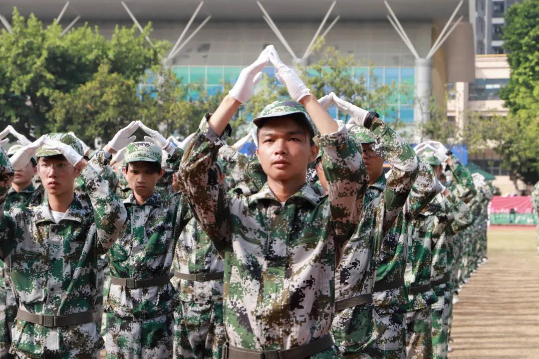 大会在升国旗、奏唱国歌中正式开始。在军训团队长的指挥下,全体新生进行了阅兵式、分列式和短棍术、匕首操、手语等汇报表演。