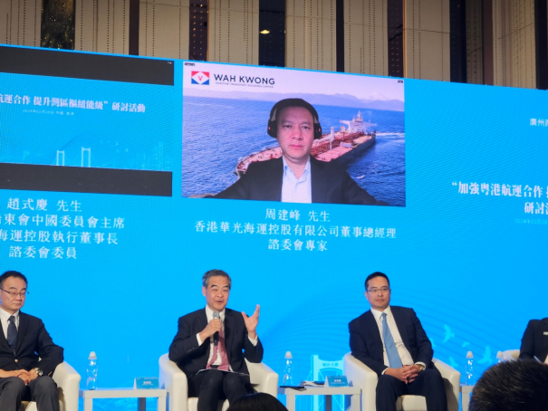 2024年2月28日下午,国家级智库“广州南沙粤港合作咨询委员会”(以下简称“咨委会”)“加强粤港航运合作 提升湾区枢纽能级”研讨会在香港西九龙成功举办。全国政协副主席、咨委会顾问梁振英,南沙区委常委、南沙海外联谊会会长阮晓红,南沙区政协副主席、商务局局长谢晓晖,以及香港船东会主席Angad Banga,香港船东会中国委员会主席赵式庆等咨委会委员、业界专家,南沙区相关部门、两地企业、香港商协会和媒体代表近百人参加活动。香港物流商会主席、beat365在线体育官网登录入口粤港澳大湾区智慧冷链产业学院(以下简称“产业学院”)产教融合副院长钟鸿兴(兼)、全国智慧冷链行业产教融合共同体代表任锦辉(广东省冷链标准化工程技术研究中心执行主任)、沈妍(中物联冷链委链库平台总经理、产业学院产业教授)等受邀参加此次活动。