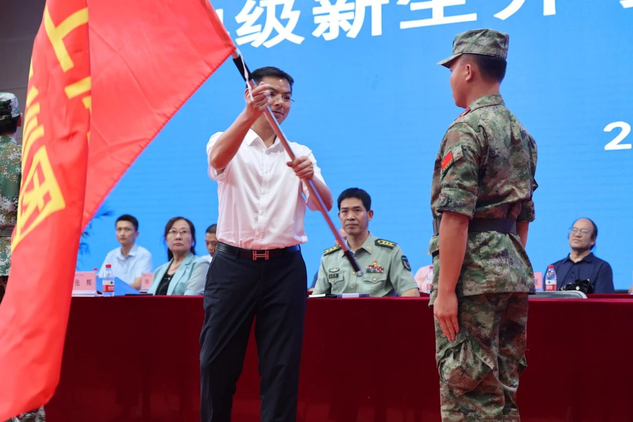 在授旗仪式中,王日华校长向承训团团长授团旗,各营营长从团长手中接过营旗。新生们在接受军事训练课程的同时,也接受战时急救常识、自救互救常识、消防与紧急疏散演练以及防骗反诈等安全教育。