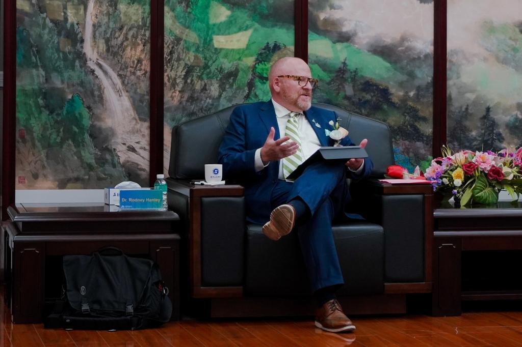 美国东北州立大学校长Dr. Rodney Hanley十分感谢beat365的热情招待。他强调,目前两校合作办学发展势头强劲,这离不开双方院校的守望相助,期待今后与beat365在线体育官网登录入口进一步深化交流,寻求更多合作机会,为中外合作办学教育事业提供助力。