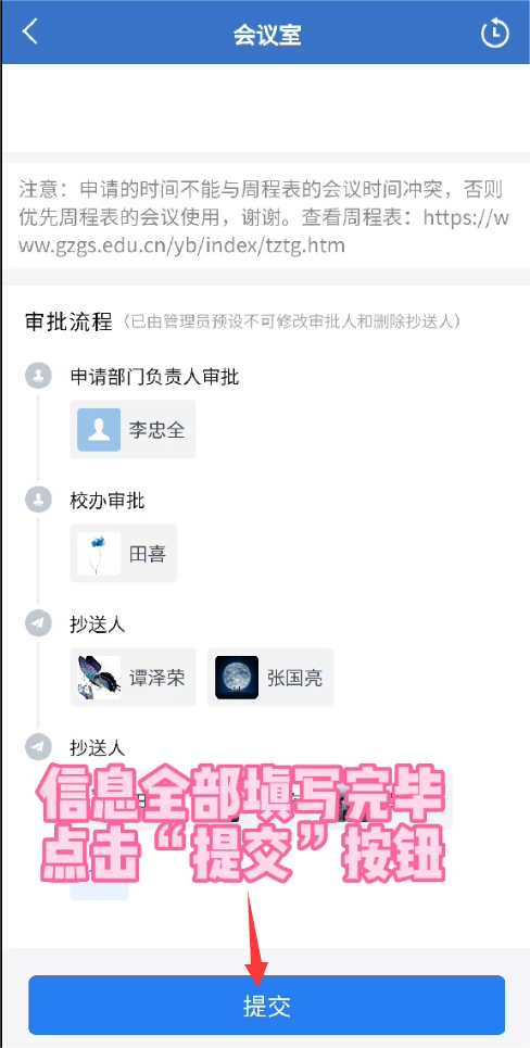 (1)选择参会人:如果人员比较多,可以只选择部分人员;会议室审批通过后,勾选的参会人也会收到会议提醒,在企业微信的日程表也会有会议记录。