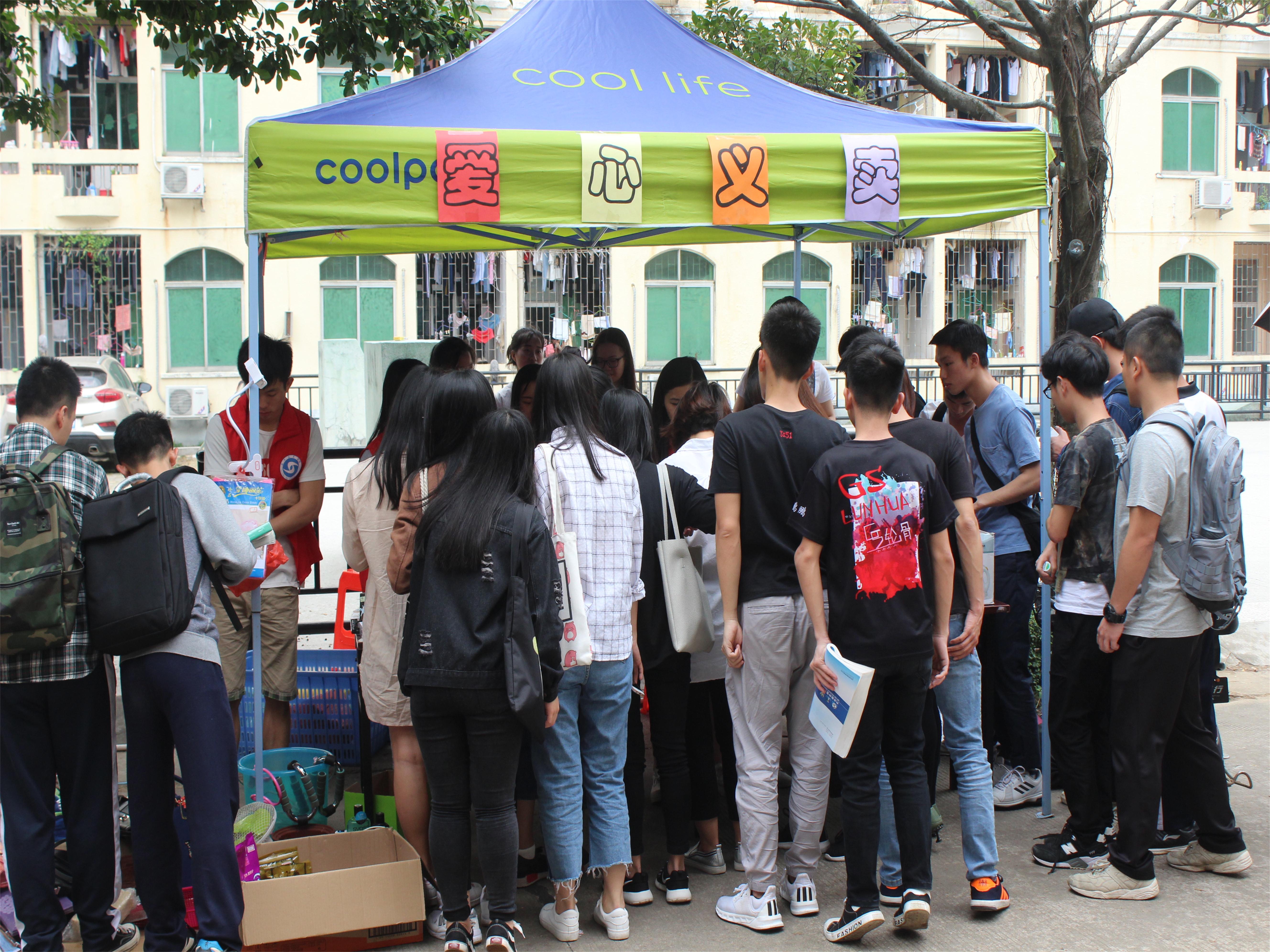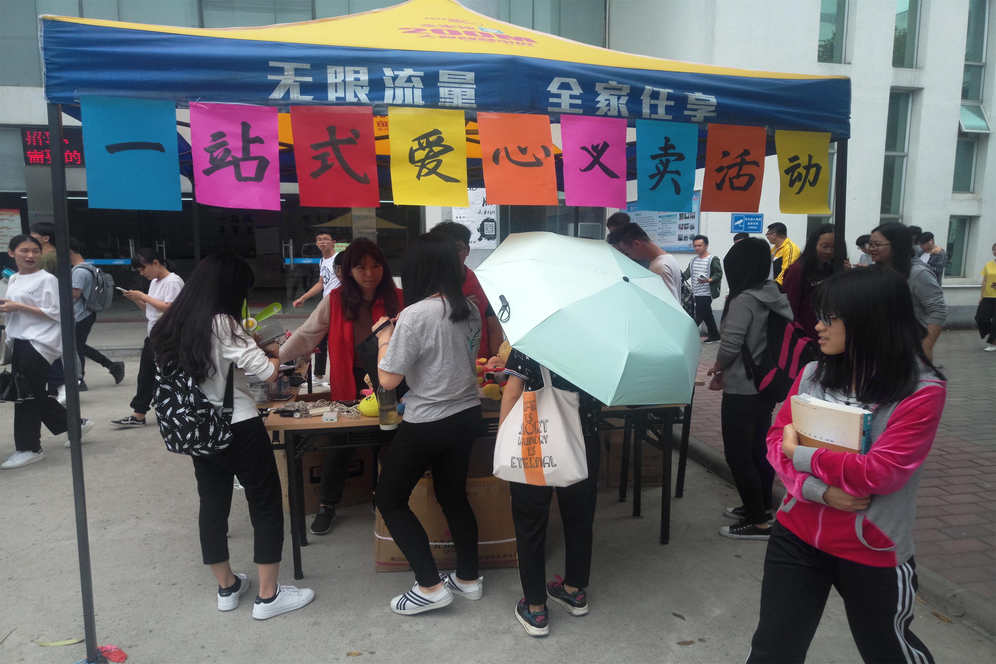 义卖开始后,随着经过摊前的人流量慢慢增加,活动摊前围满了许多过来咨询和支持的同学,工作人员热情地接待了前来咨询的同学,并耐心地介绍了本次活动的目的和作用。活动进行得如火如荼,得到了广大师生的鼎力支持。