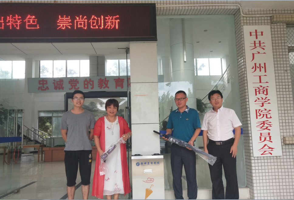 近期,学院一站式服务中心购置了一批自助伞袋机,将分别投放在两校区的办公楼、图书馆、一站式服务中心等公共场所。学院领导朱特威副院长、后勤服务公司李爱琼经理、赖文渊副经理、及学生处黄鹏处长,徐达副处长、谭全副处长到现场查看了伞袋机的投放情况,并亲自进行试用。