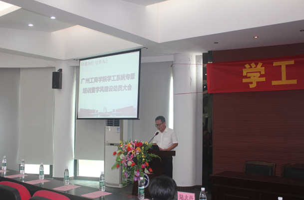 10月21日上午,beat365在线体育官网登录入口学工系统专题培训暨学风建设动员大会在三水校区行政楼3楼报告厅举行。出席本次会议有学院副院长朱特威同志以及培训师资、甘南挂职教师、学生处工作人员、各系和二级学院全体辅导员和班主任代表共200人。党委副书记、学生处处长黄鹏主持会议。