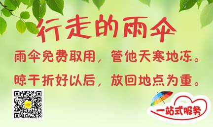 免费雨伞的投放给师生们带来了便利,获得师生们的一致认可。一站式在这里也呼吁各位师生,请爱护好雨伞,用完后请晾干折好尽快放回投放点,以便更多的人能受惠。
