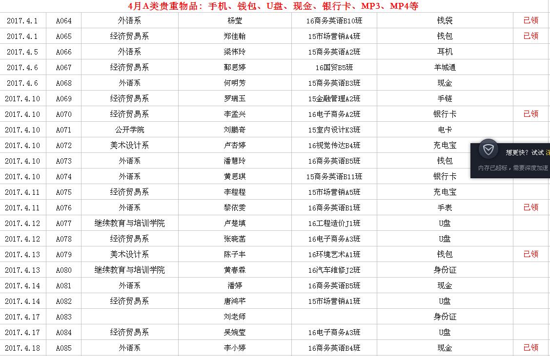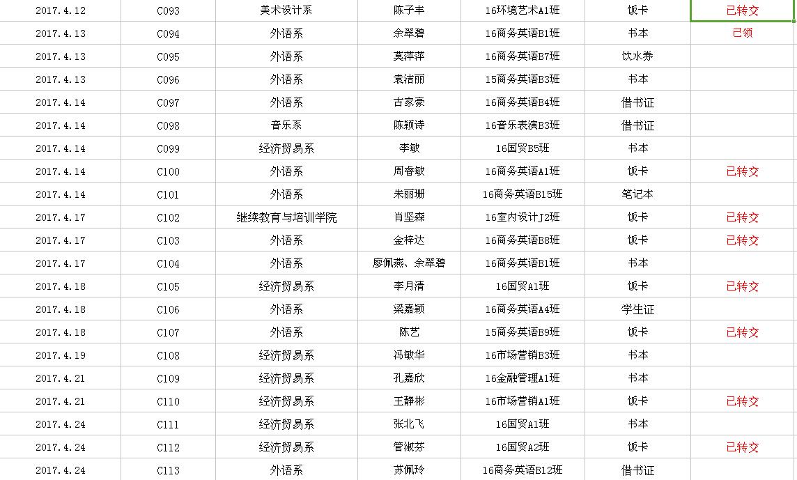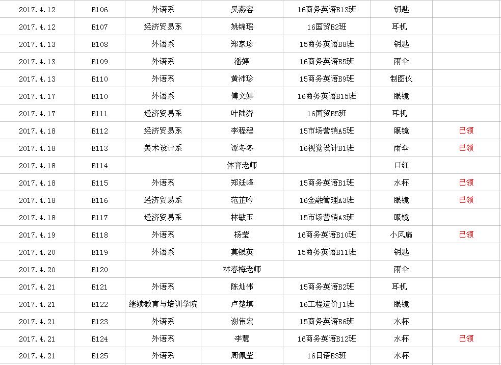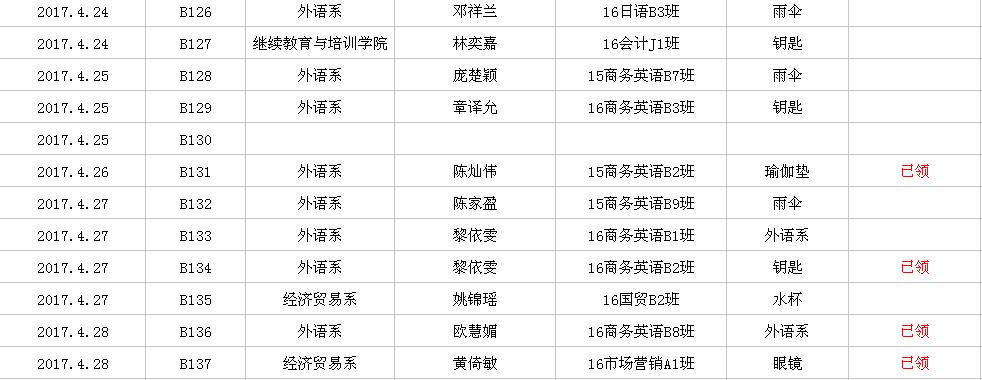 2017年4月失物招领