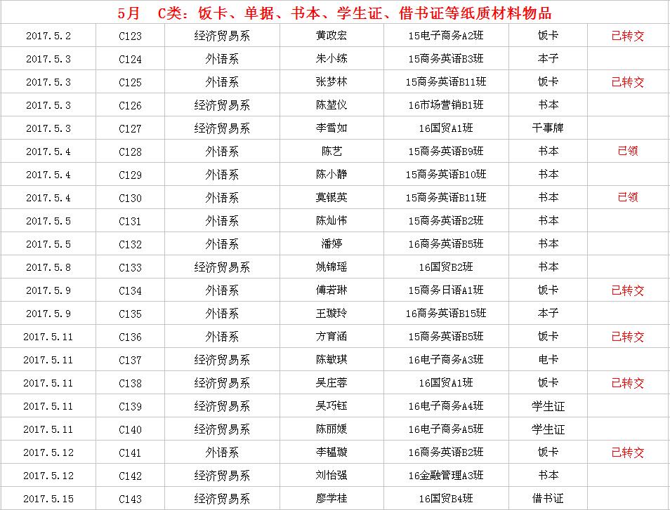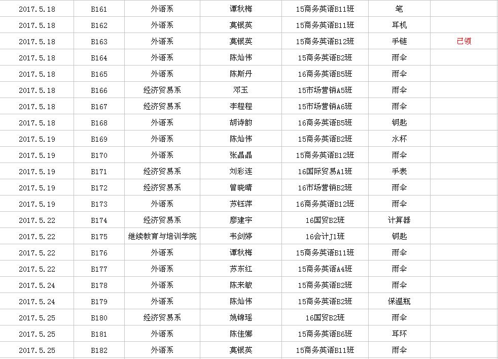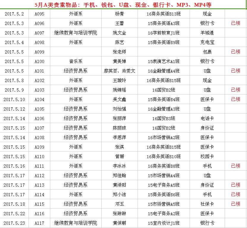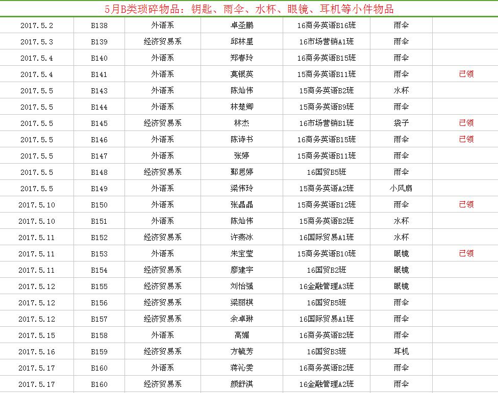 2017年5月失物招领