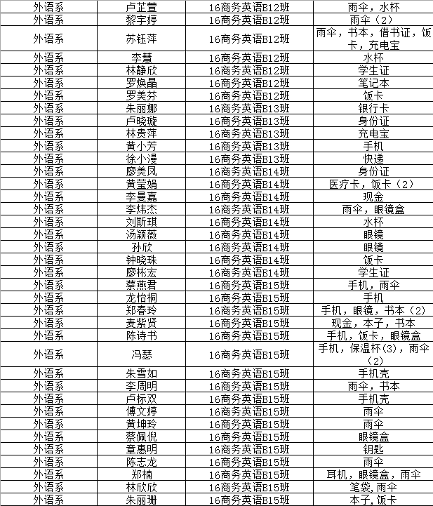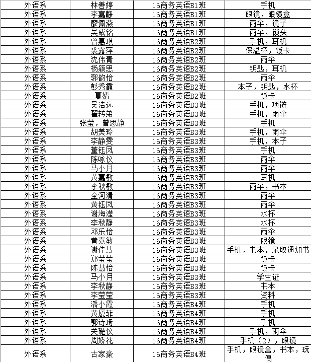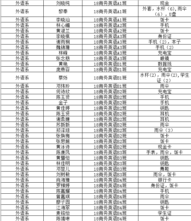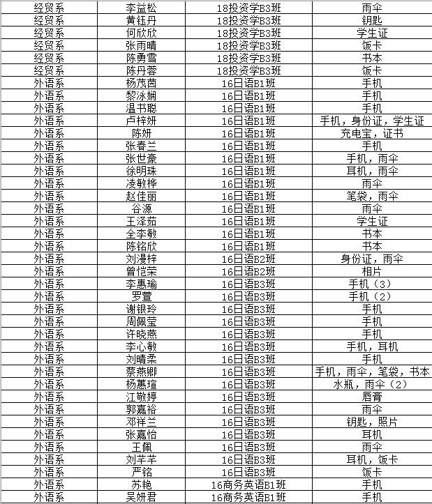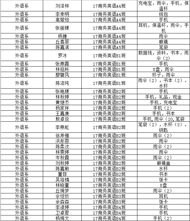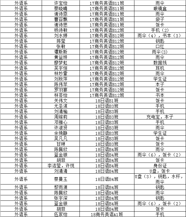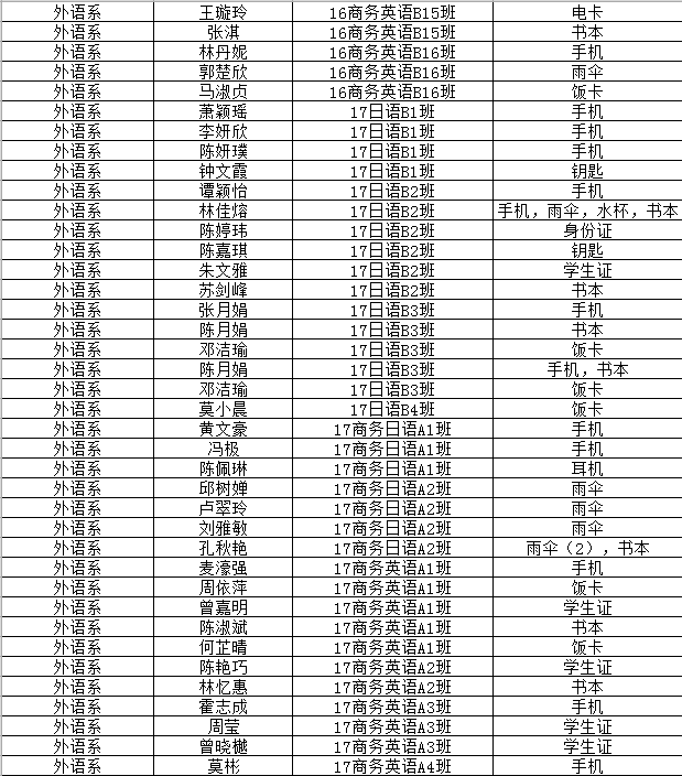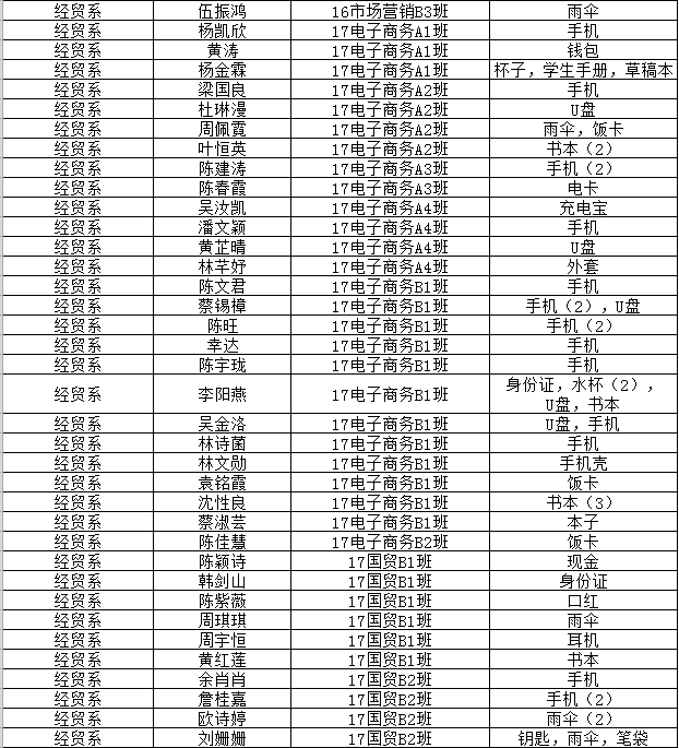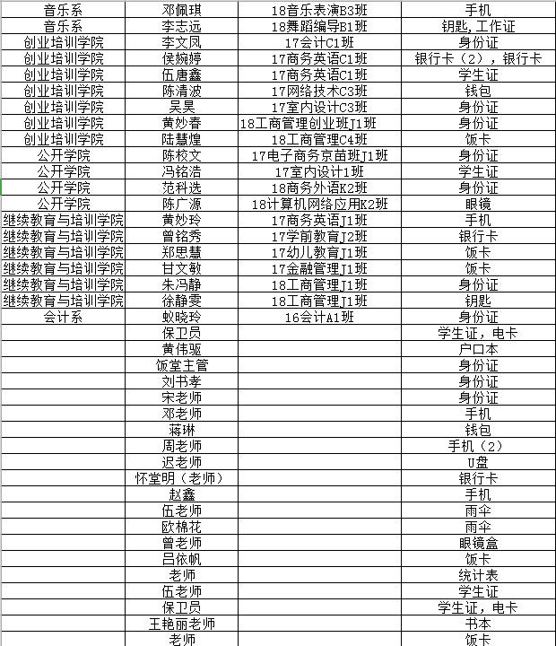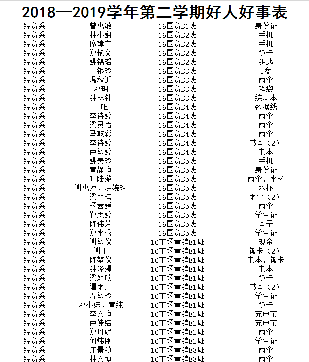 学院“以德为行,以学为上”的教育思想引导师生们以崇高的道德准则作为的行动指南,积极践行道德规范。一站式服务中心“失物招领”平台受到广大师生的支持,每学期都收到不少老师和同学交过来的失物,失物的及时上交使失主能及时领回自己的失物。“拾金不昧”的行为正是我院师生积极践行“以德为行,以学为上”良好体现,有助于文明和谐校园的建设。在此感谢上学期拾金不昧的老师及同学。(名单如下)