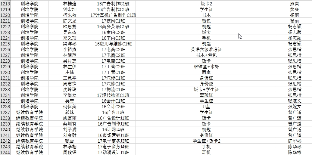 学院“以德为行,以学为上”的教育思想引导师生们以崇高的道德准则作为的行动指南,积极践行道德规范。一站式服务中心“失物招领”平台受到广大师生的支持,每学期都收到不少老师和同学交过来的失物,失物的及时上交使失主能及时领回自己的失物。“拾金不昧”的行为正是我院师生积极践行“以德为行,以学为上”良好体现,有助于文明和谐校园的建设。在此感谢上学期拾金不昧的老师及同学。(名单详见附件2017-2018学年第二学期拾金不昧名单)