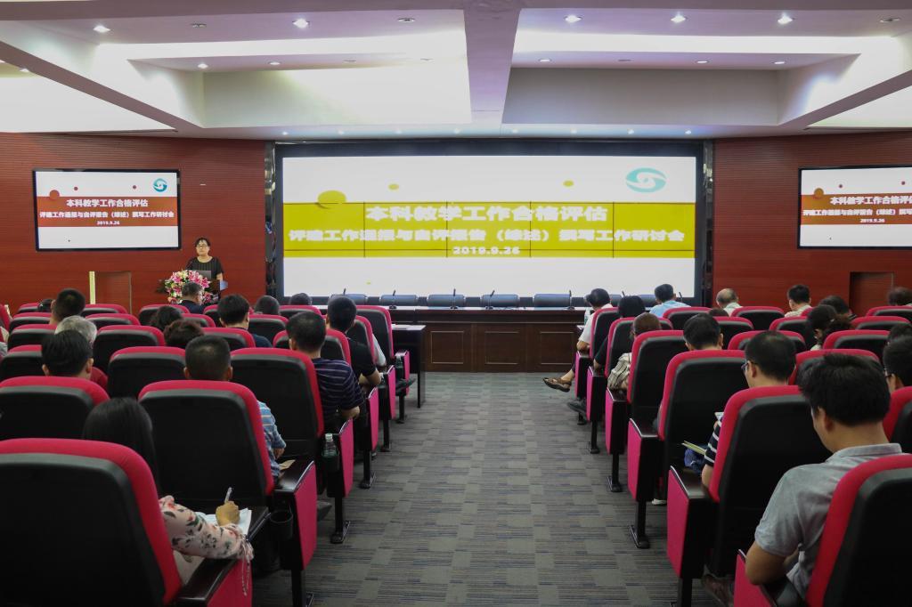 【本网讯】9月26日下午,本科教学工作合格评估评建工作情况通报与自评报告(综述)撰写工作研讨会在三水校区办公楼举行。学校评建项目组、工作组全体成员,教学单位评建办领导及全体成员,各单位撰稿人,共计110人参加了本次会议。乔丽媛副院长主持本次会议。