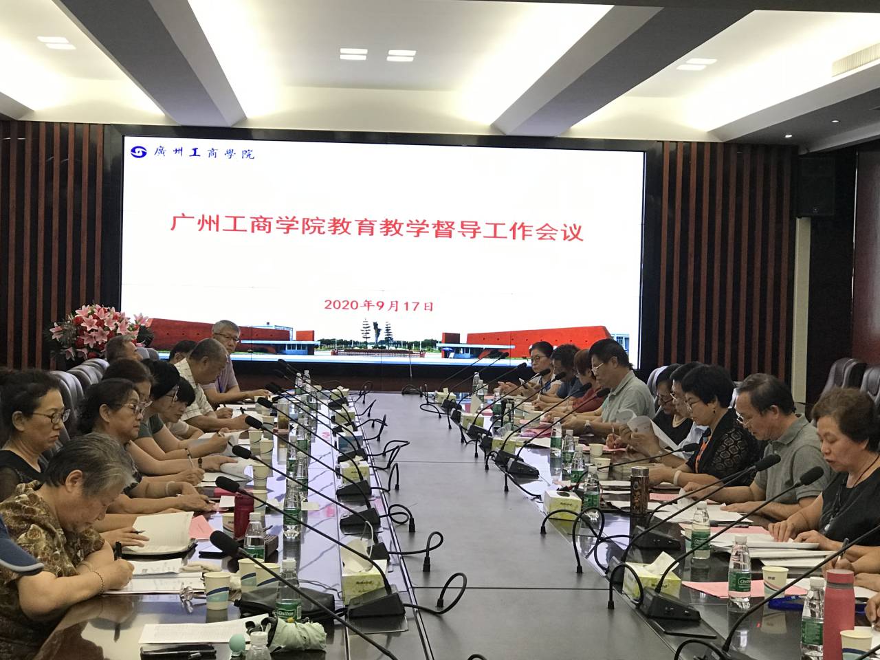 2020年9月17日下午,教育教学督导办公室在三水校区图书馆六楼会议室召开了本学年第一次教育教学督导工作会议,学院院长邝邦洪教授、学院副院长乔丽媛教授、董事办陆志丹主任、教务处李赣处长、督导办主任赵复查教授和专职督导张红副教授,以及各教学单位的23位兼职督导员参加了会议,本次会议主题为“迎评促建关键期的教育教学督导”。